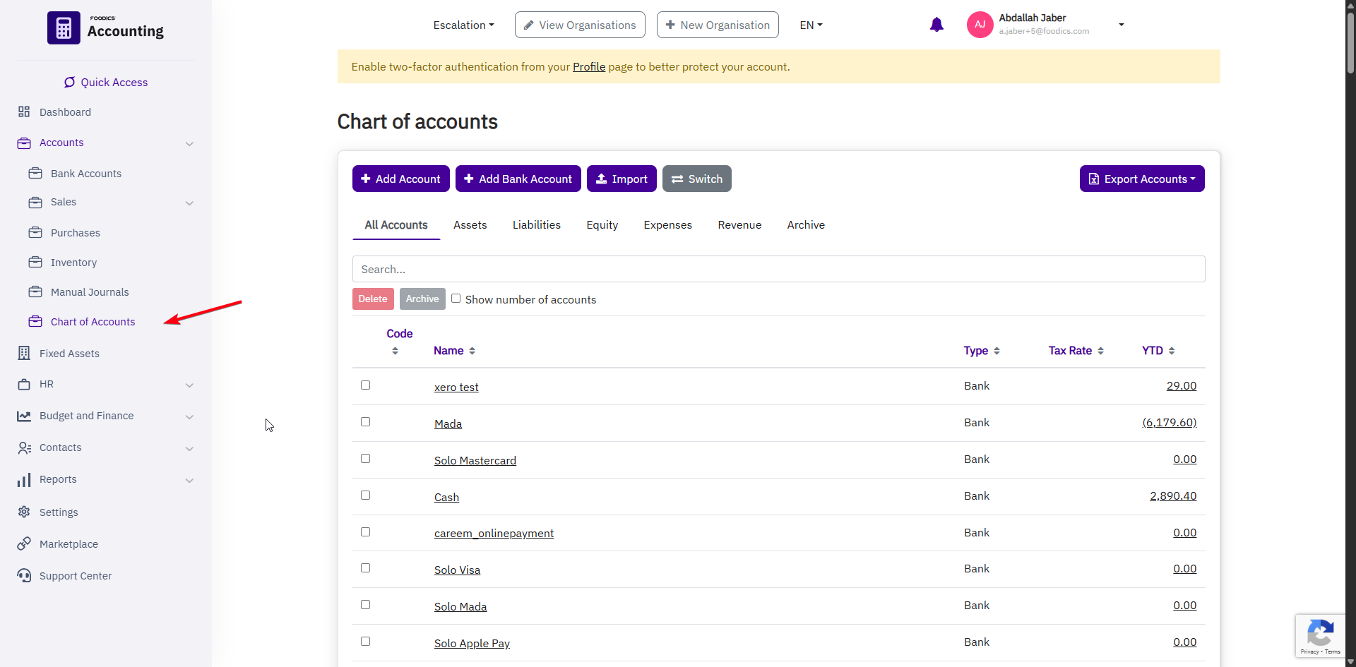 Chart of Accounts Explanation and user guide for Foodics Accounting