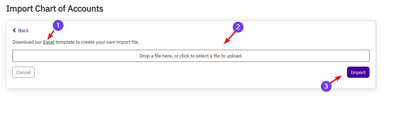 - Select Excel, fill in the required data in the template, then re-upload the file → Click Upload