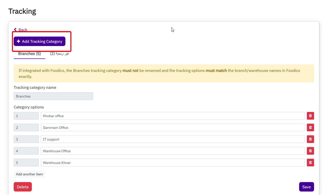 How to manage tracking revenue/cost centers in Foodics Accounting