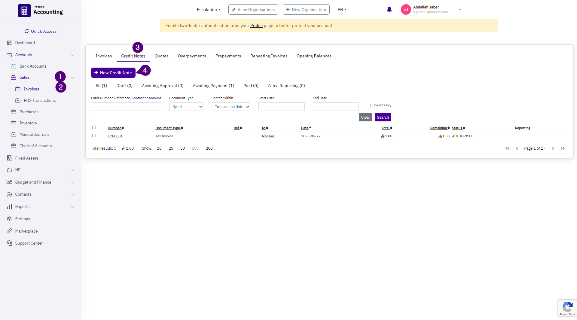 How to Credit Note Sales Invoices in Foodics Accounting