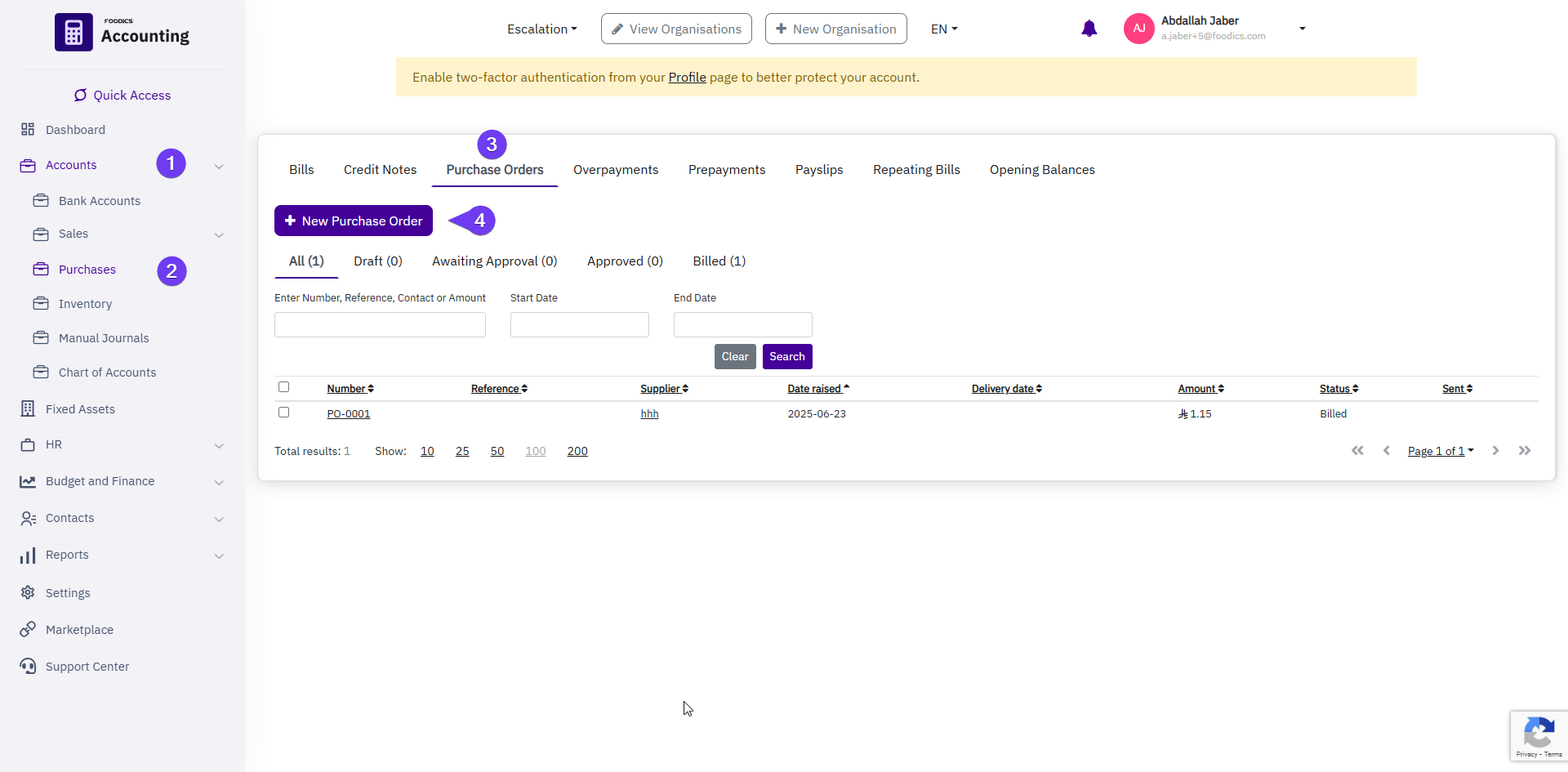 Creating Purchase Orders in Foodics Accounting