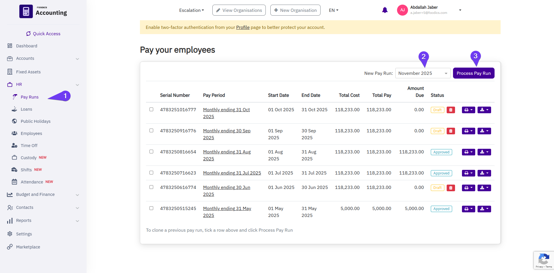 How to manage Pay Run in Foodics Accounting