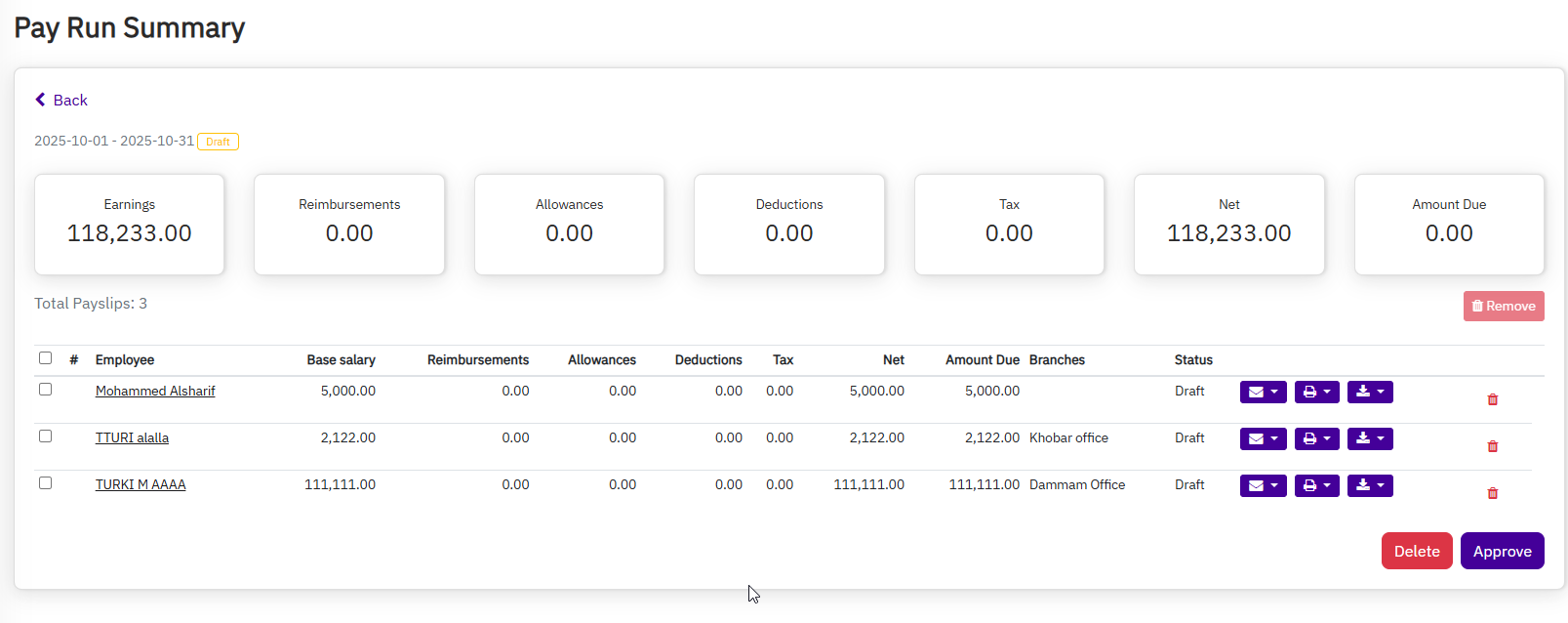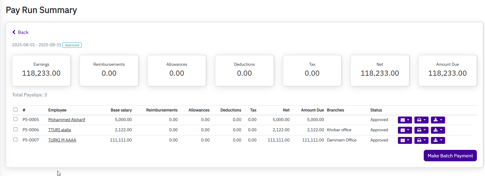 Note: Once the payroll run is approved, it will receive a sequential number in the payslips and affect the accounts accordingly.