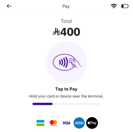 Ask the customer to tap their card or smart device (e.g., Apple Pay, mada, Visa, Mastercard) on the terminal.