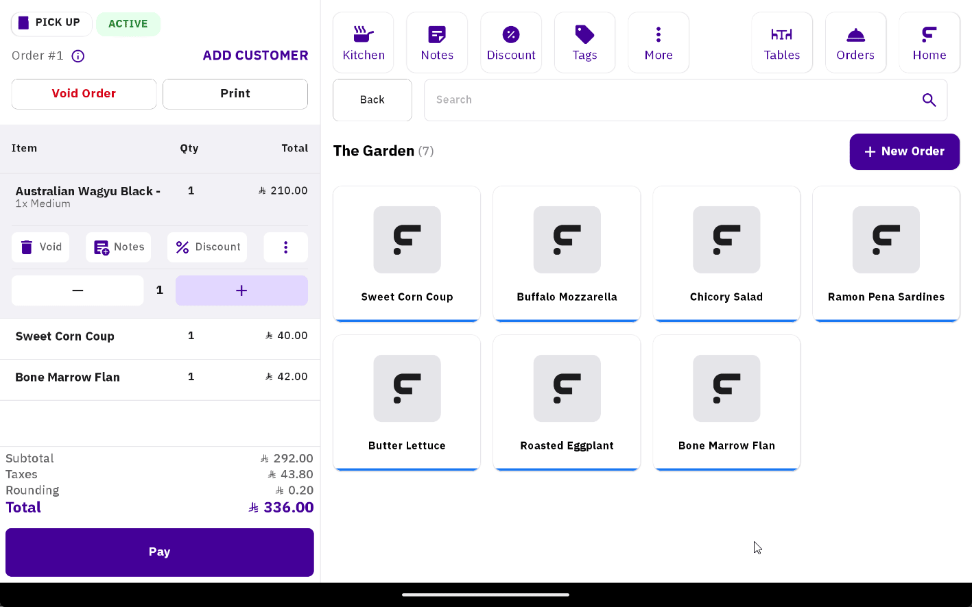 The following steps will show the process of creating an order, including choosing products, paying for the total, and sending it to the kitchen for preparation.