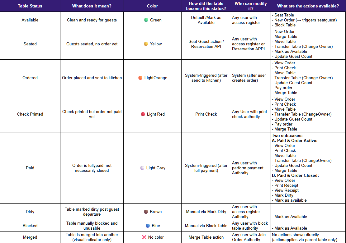 Related articles How to split orders in Foodics Black Understanding Kitchen Status in Foodics Black Understanding Table Report in Foodics Black Promoted articles Master guide on Console Reports and how to utilize them Master Guide for Menu and Products Master Guide on Inventory Management Master Guide regarding Console Management and settings Understanding Table Status & Actions in Foodics Black August 06, 2025 12:07 Updated Previous Next 21579934663708