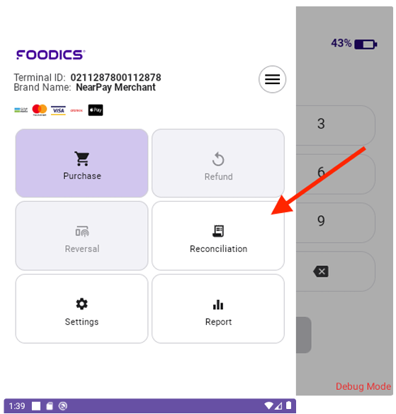 - Open the Drawer Menu and select Reconciliation.