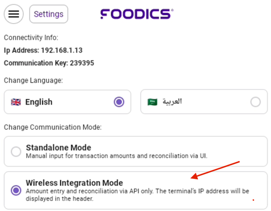 - Choose between Standalone Mode or Wireless Integration Mode.