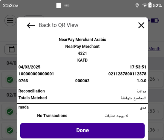 - Enter your PIN code to access the reconciliation screen.