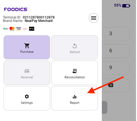 - Open the Drawer Menu and select Reports.