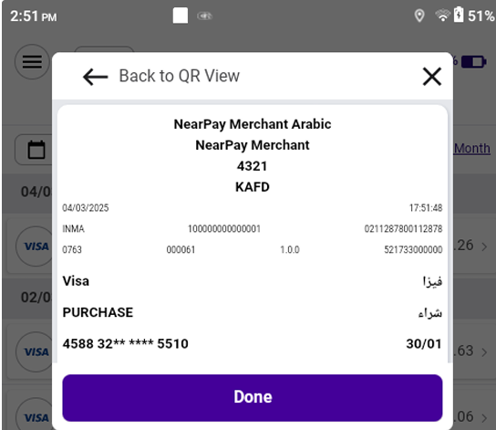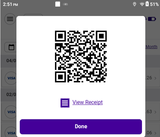 - Click on a transaction to view its receipt.