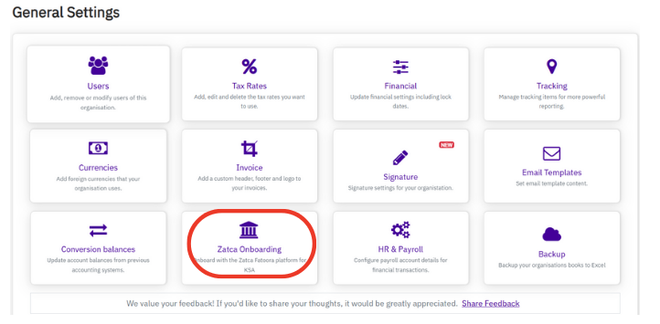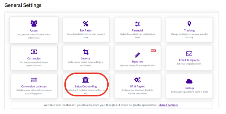 - From Foodics Accounting go to Settings > Zatca Onboarding