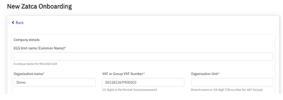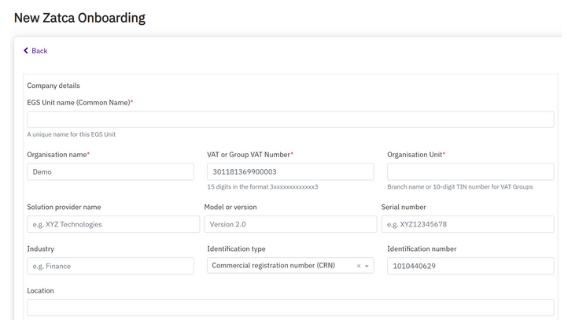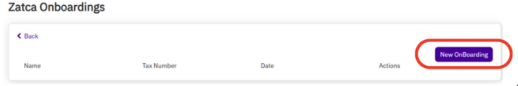 Select the onboarding type and add the OTP code from Fatoora platform.