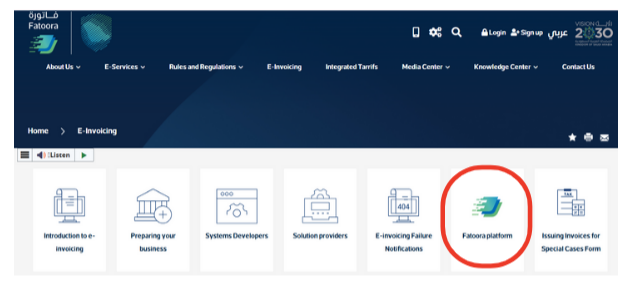 1- Access Fatoora platform from Zakat Authority website2- Log in using the TIN / Email and Password