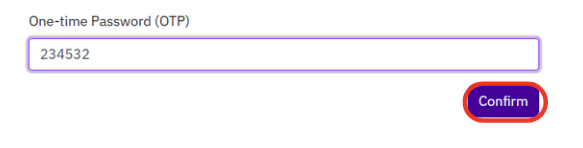 Enter the 6-digit OTP code, then click "Confirm." Follow the steps below to generate the OTP code from