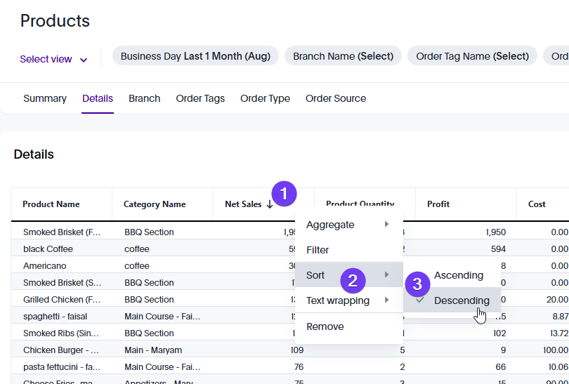 In this guide will guide you on how to manipulate any tables in Foodics BI. The tables in Foodics BI are flexible