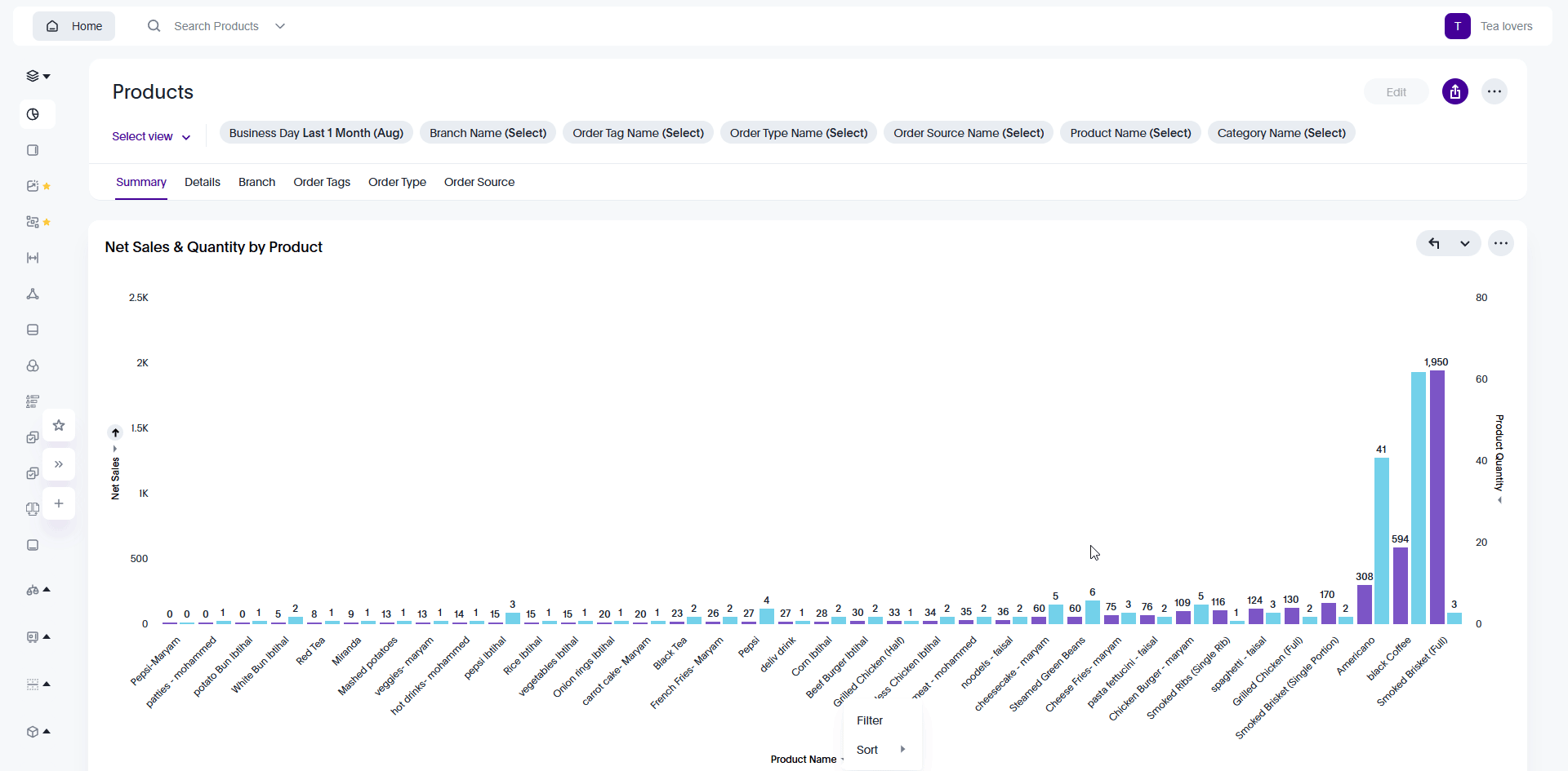 In Foodics BI can be either Sorted or Filter.
