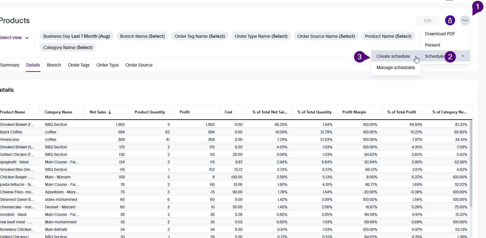 How to schedule reports in Foodics BI?