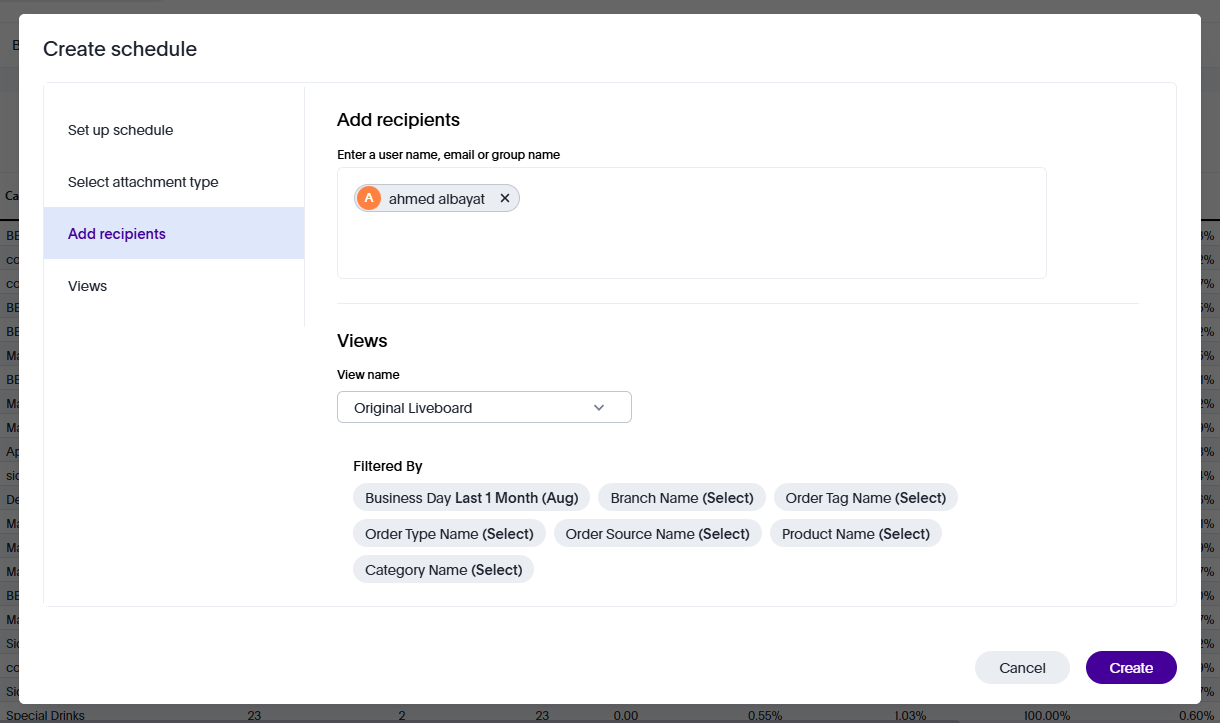 In this guide we will explain how to schedule email reports from within Foodics BI.