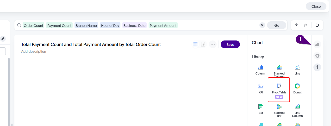 - Pivot Tables: To get the pivot table, go to an existing report. Normally it would select columns or tables by default, however if you click on visualization on the right corner. You have the ability to change it to a pivote tables