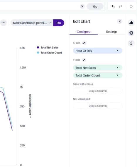We can also click on cogwheel on the right to reach the chart settings where you can edit what measure/attribute/etc is set on what axis