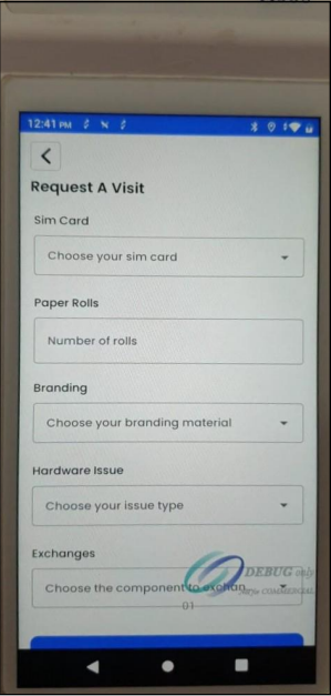 - First: By clicking on the Support option on the Device as below: - Request A Visit - Request A Call - Request A New Service