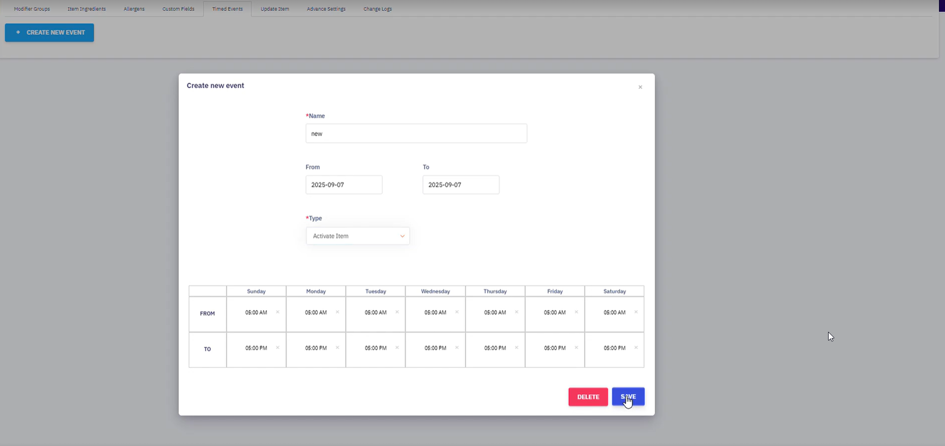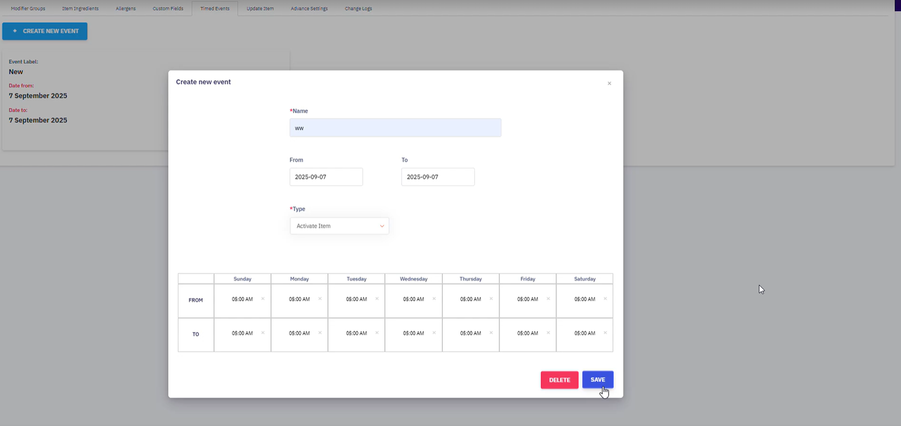 Unable to Save Time Event in Foodics Online, Why?