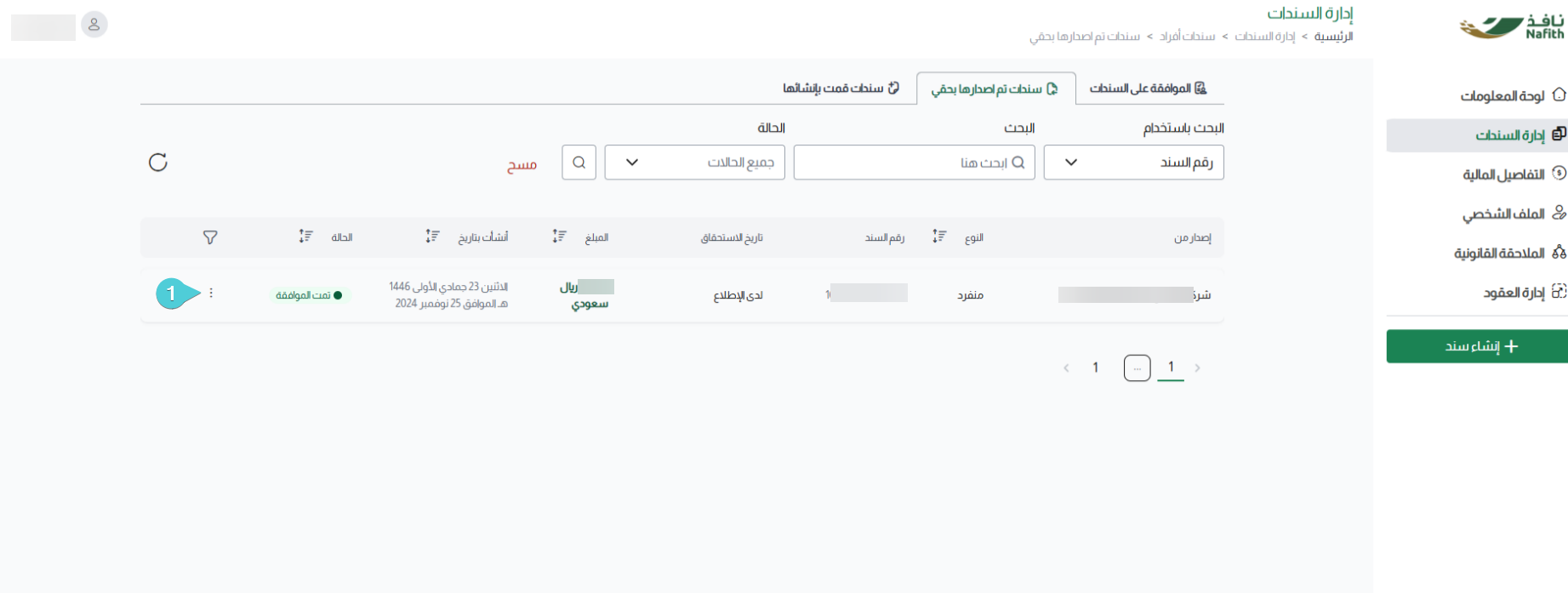 يمكن الضغط على السند، ثم على أيقونة النقاط الثلاث لعرض تفاصيل السند
