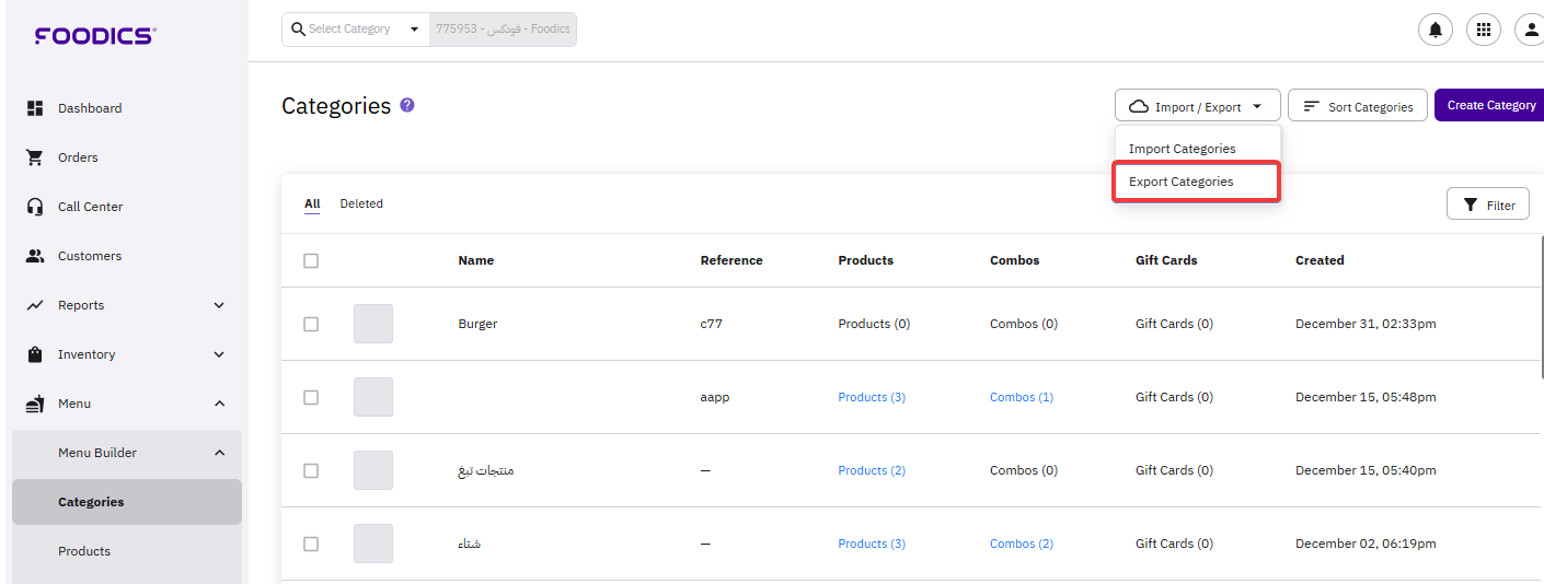 After creating several categories, the user can carry out bulk changes to these categories instead of changing them one by one through the system. Download the list, make the changes and import the CSV file into the system. To download the file: