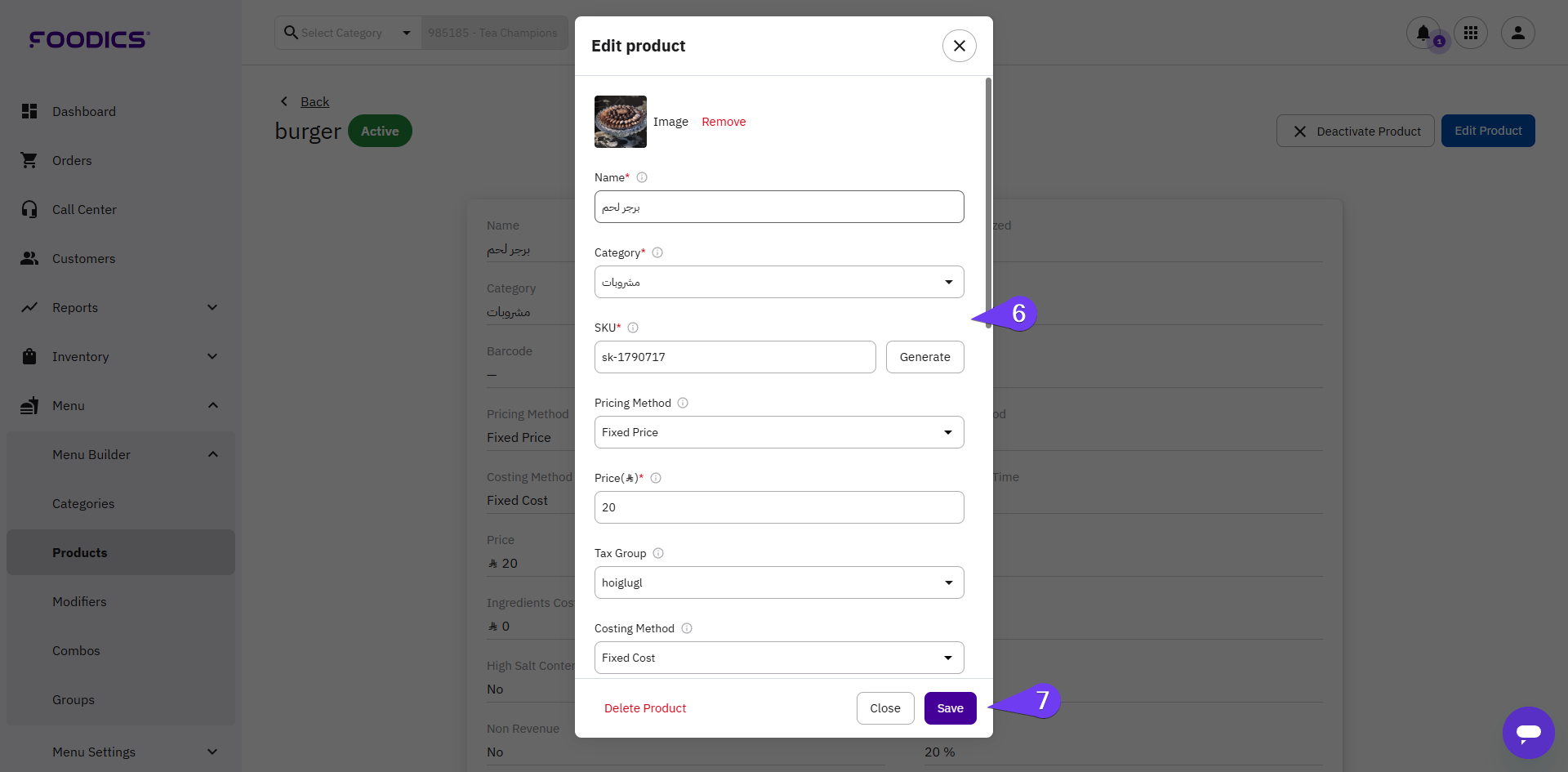 - Preparation Time (Minute): Enter the duration needed to prepare this product in the kitchen (Hint: Speed of Service reports depend on this).