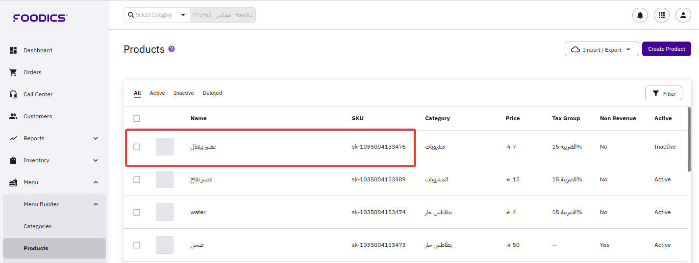 4. Click on the product to be updated.