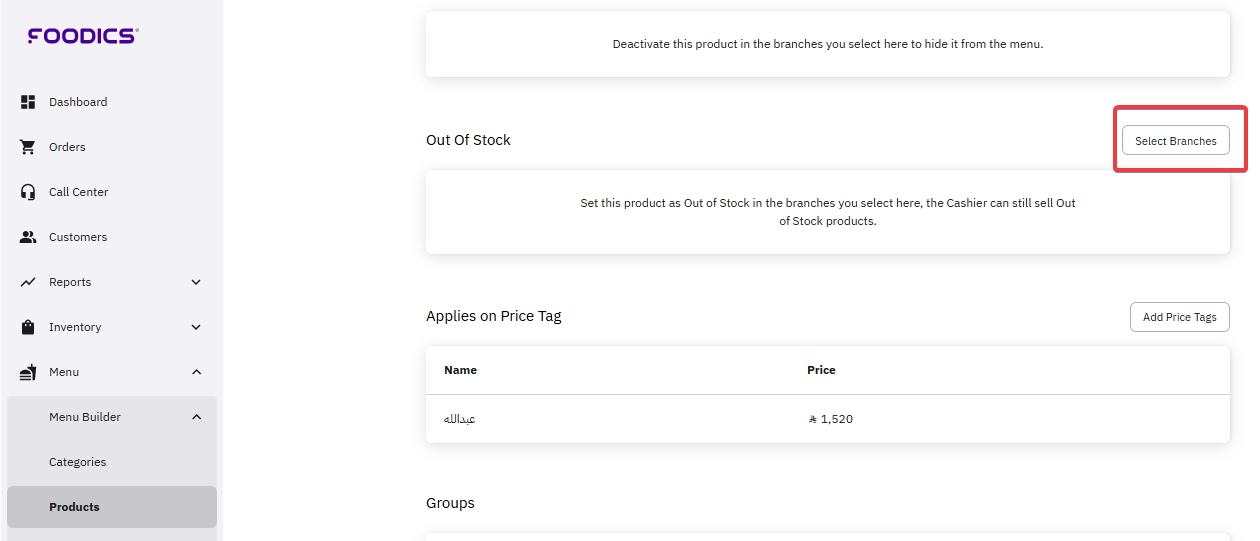 Setting Products as Out-of-Stock in Branches
