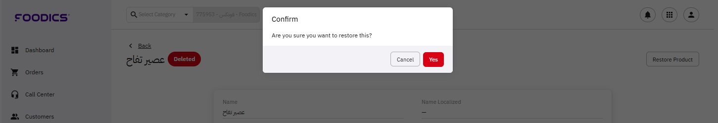 7. A pop-up window will appear to confirm the restoration process. Click Yes.
