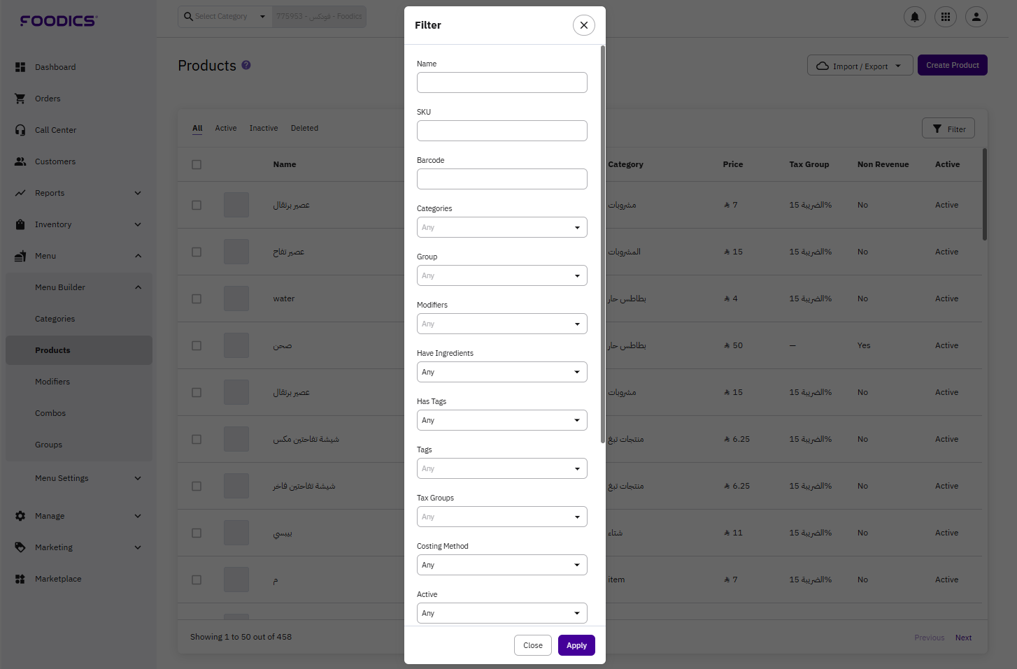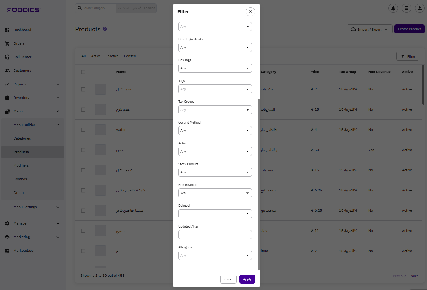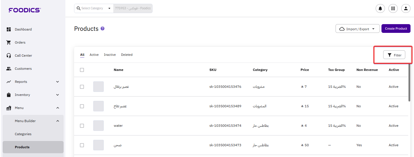 An updated list of products will show based on your entered criteria. To return to the original list of products, click the X mark in the Filter button.