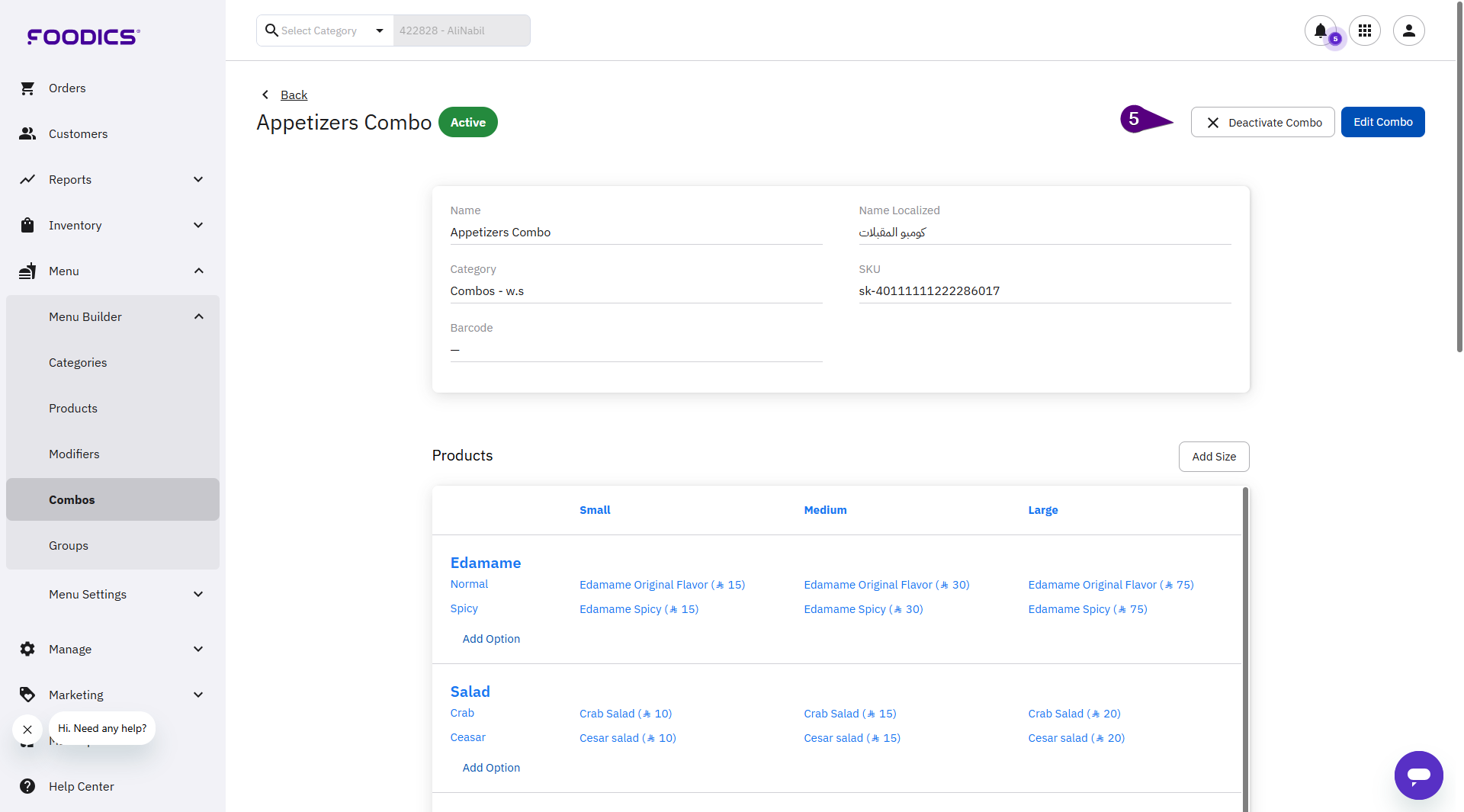 4. Click on the combo to be activated/deactivated.