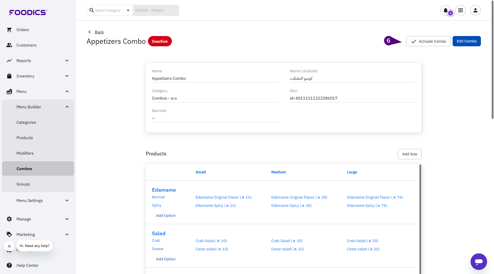 6. Click Activate Combo.