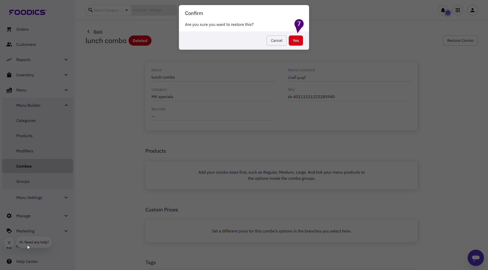 5. Click on the combos to be restored.