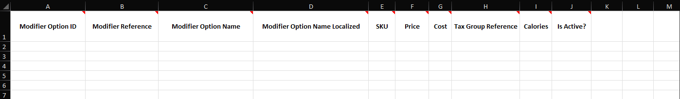 - Modifier Option Name Localized: The localized name of the option in a 2nd language of your choice.