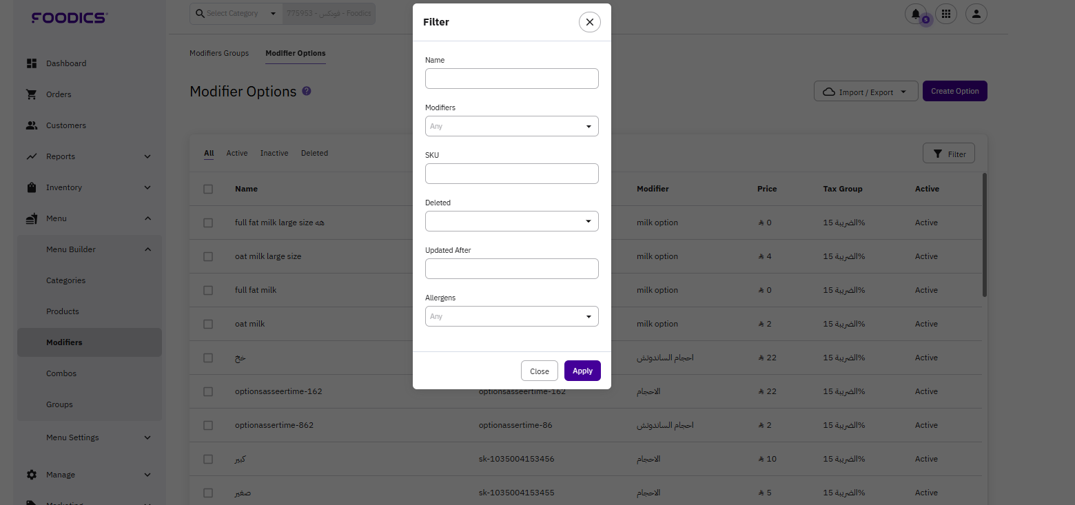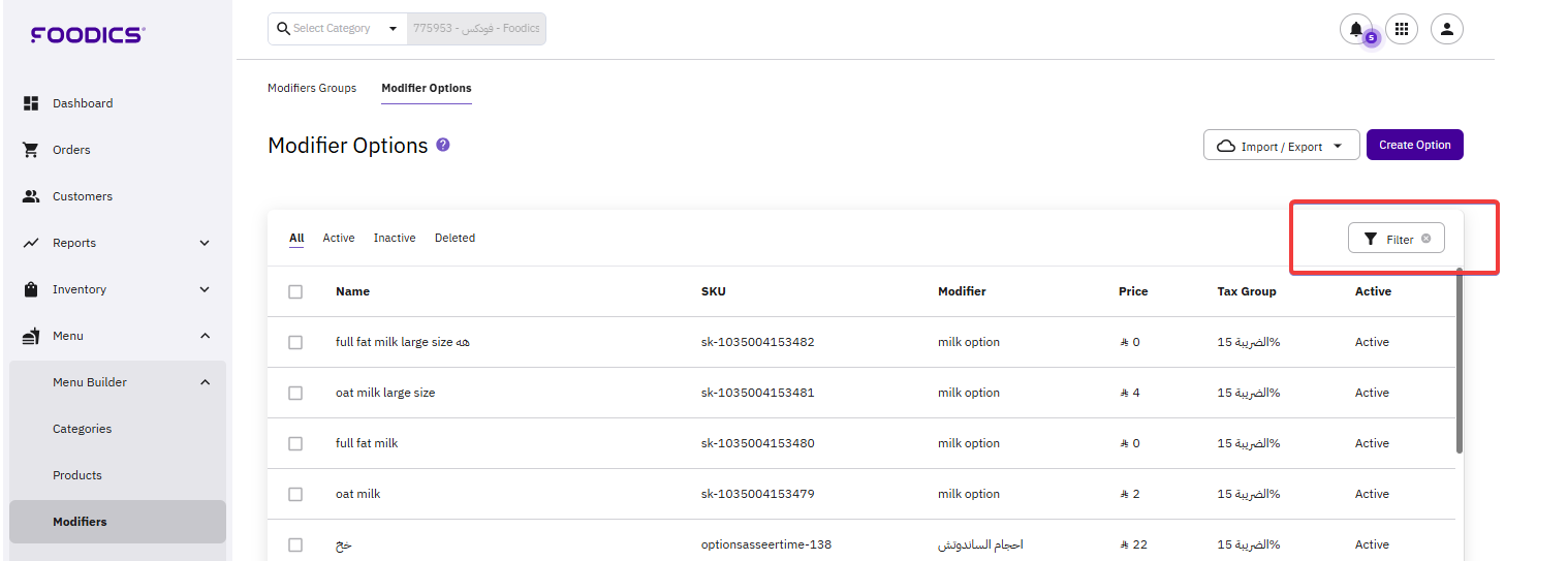 If you have a lot of modifier options, you can easily filter them based on a few criteria to reach your request and perform any additional actions you like.