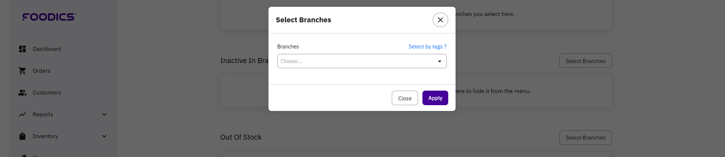 6. Scroll down to Out-of-Stock section and click Select Branches.