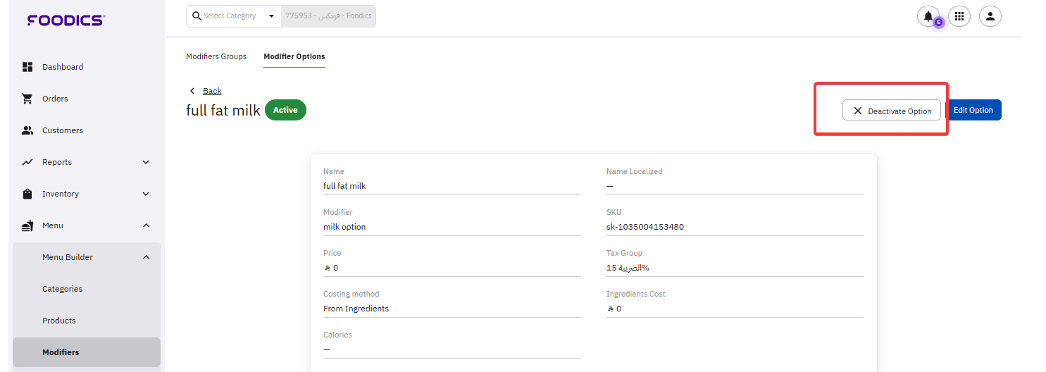 Alternatively, if your modifier option was deactivated and you wanted to activate it, follow the same steps above and replace step 4 by: