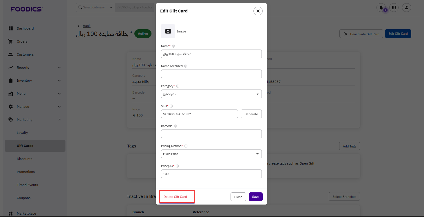 Deleting Gift Cards