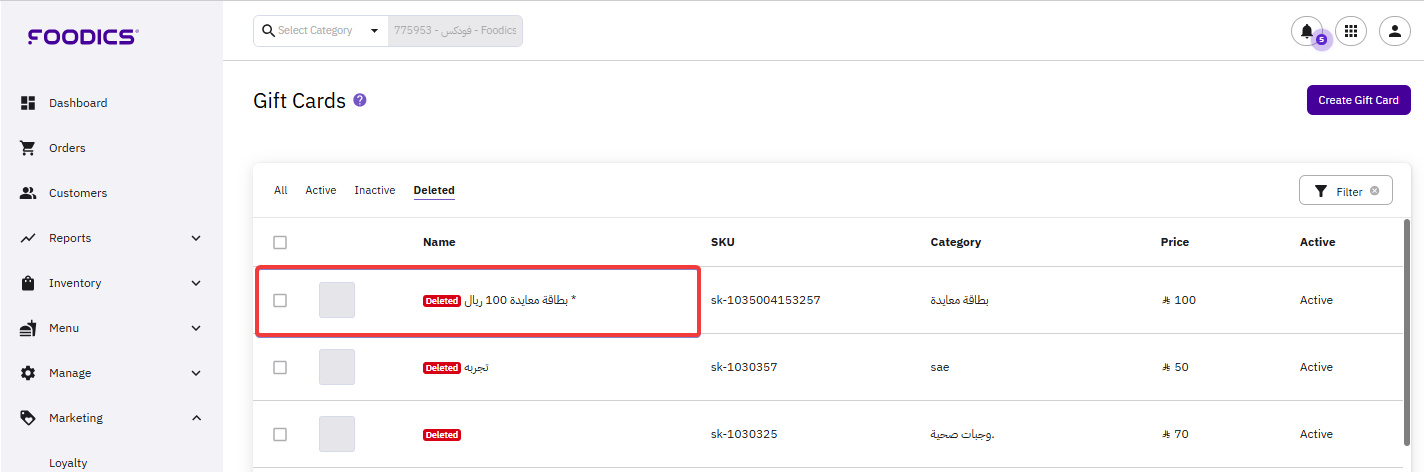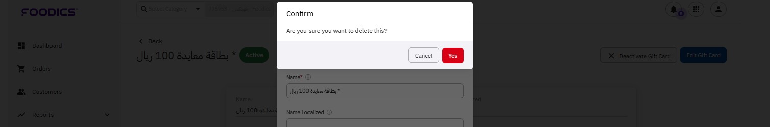 You may decide to delete a certain gift card from your menu for any reason. The good thing is that this action is totally reversible and you can restore it any time you want.