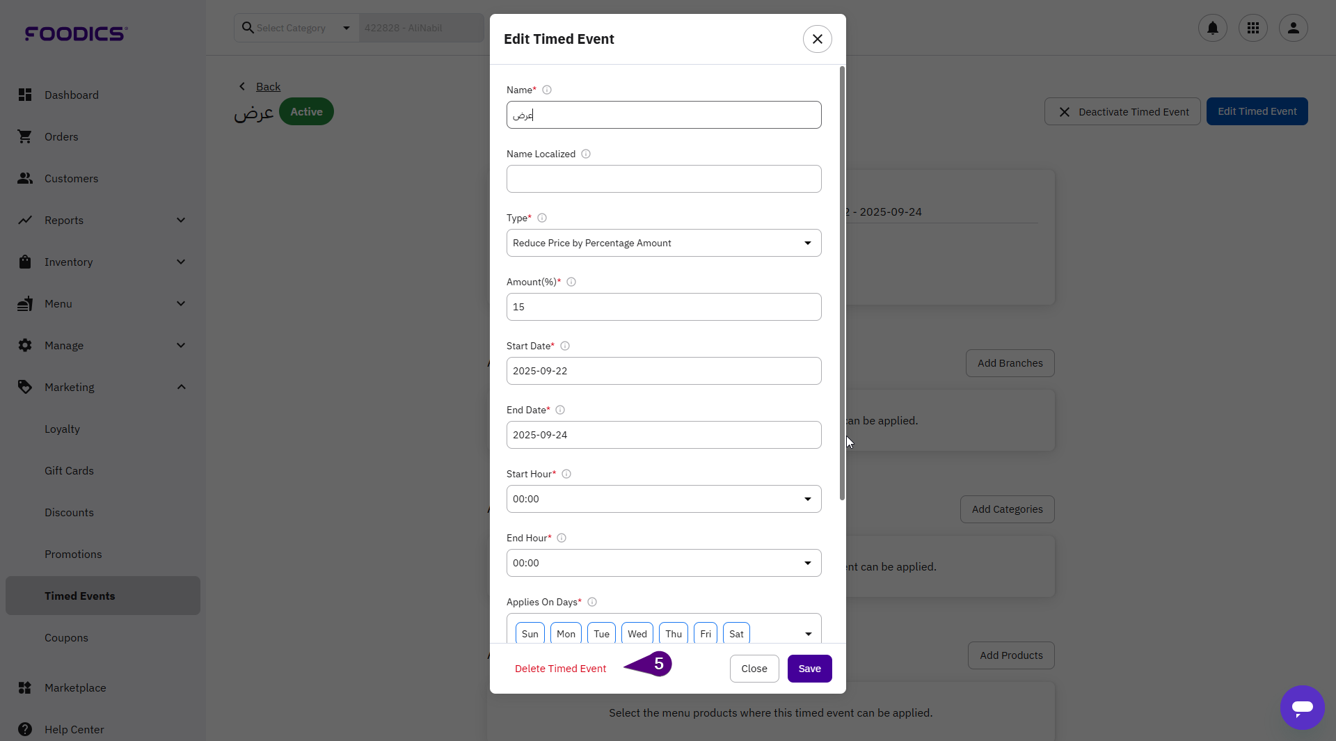5. A pop-up window will open where you can click Delete Timed Event.