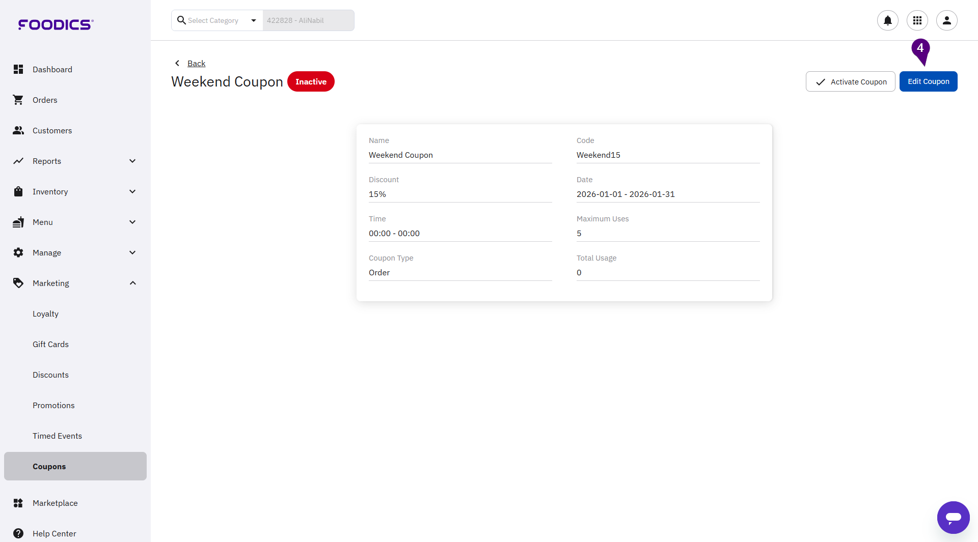 4. Click Edit Coupon.