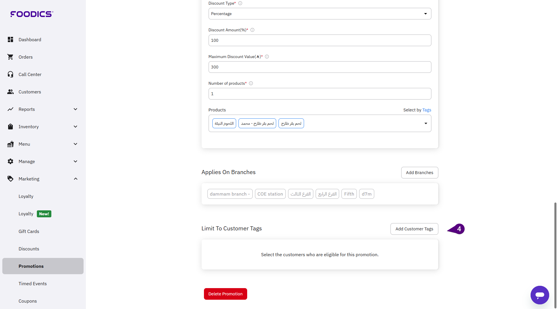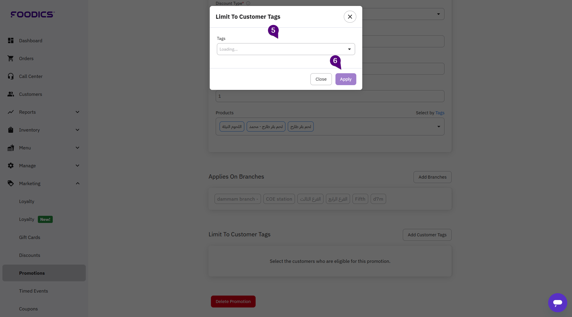 5. A pop-up window will open where you can select the customer tags for which the promotion can be applied.