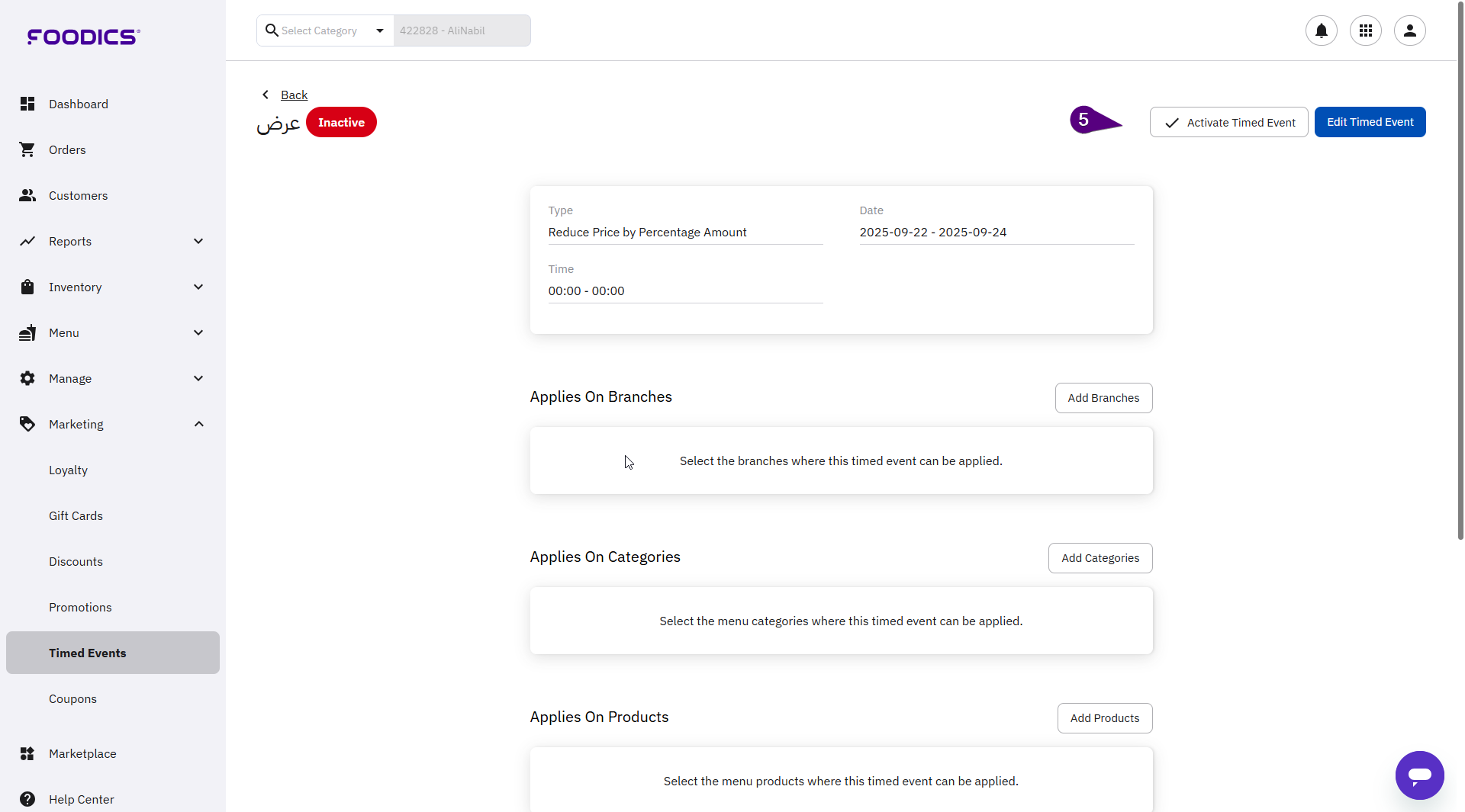 Alternatively, if your timed event was deactivated and you wanted to activate it, follow the same steps above and replace step 4 by:
