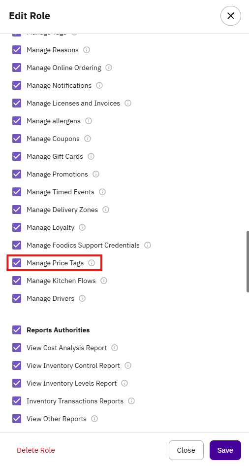 Once this permission is enabled, the Price Tags section will appear, and you will be able to manage price tags normally through the Console.