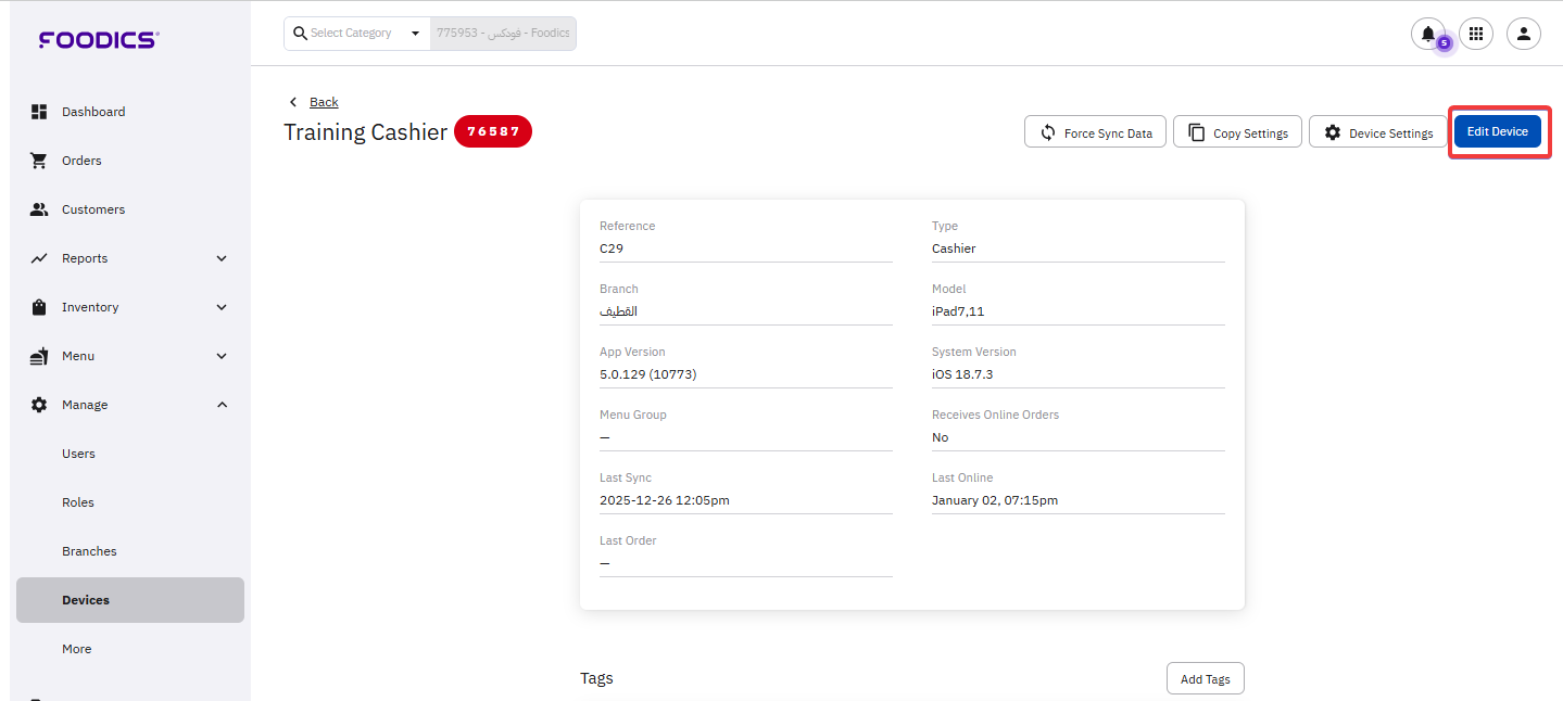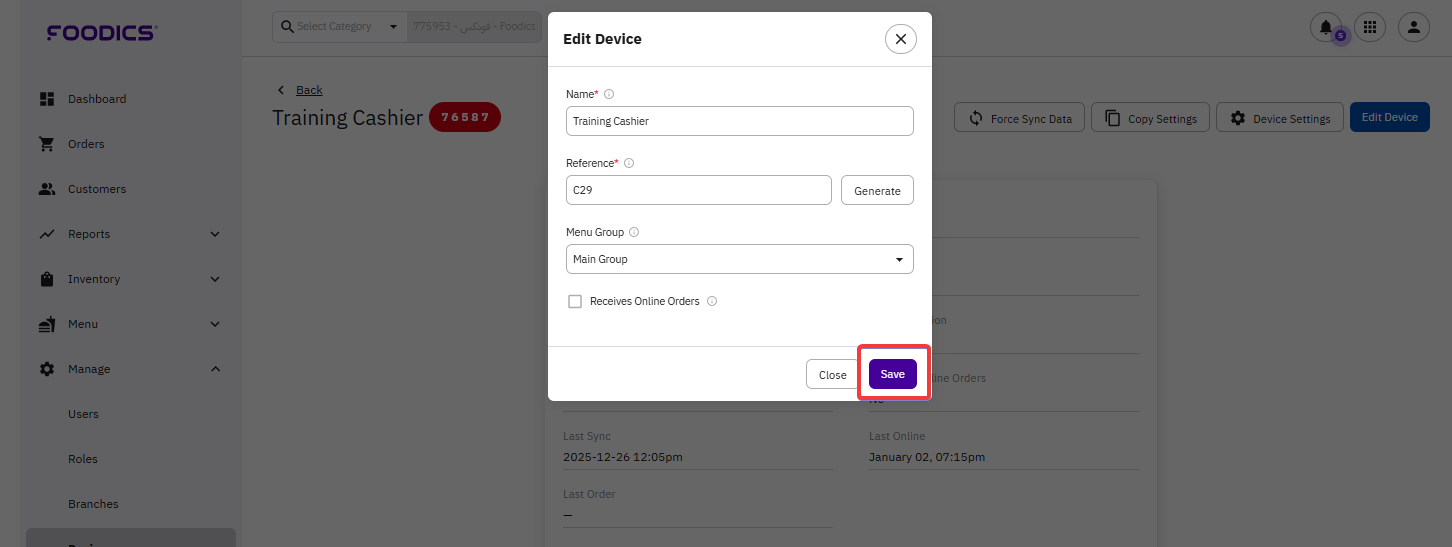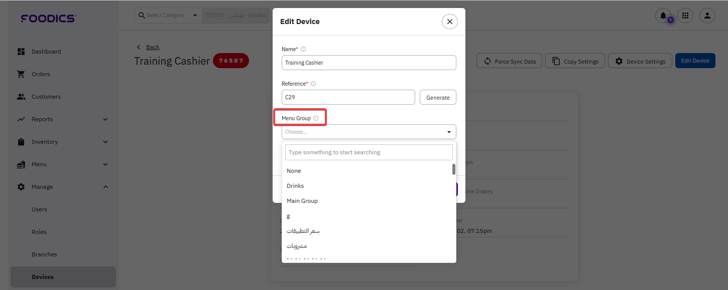 How to Assign a Menu Group to a Cashier/Sub Cashier Device