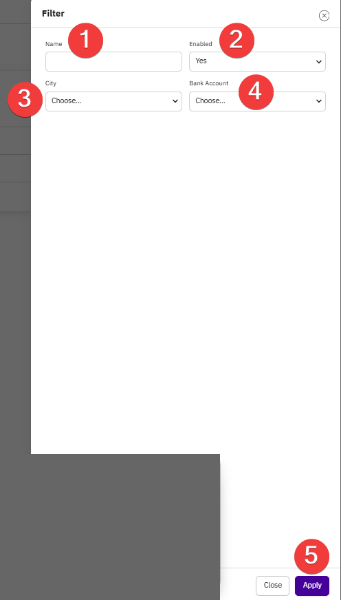 - Bank Account: Select the bank account linked to the branches you want to display.